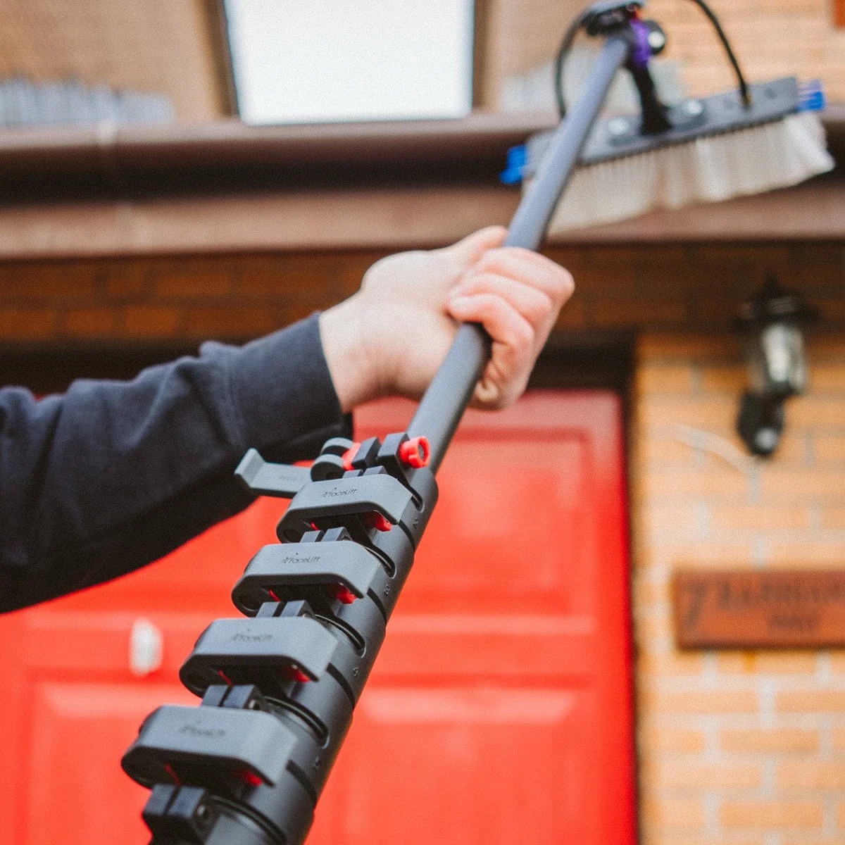 Part of the new Orbital pole collection, this pole features oval carbon fibre pole sections that provide better grip than traditional round poles. Carbon fibre is often considered the ‘gold standard’ for window cleaning as it is equal parts lightweight, strong, and hard-wearing.