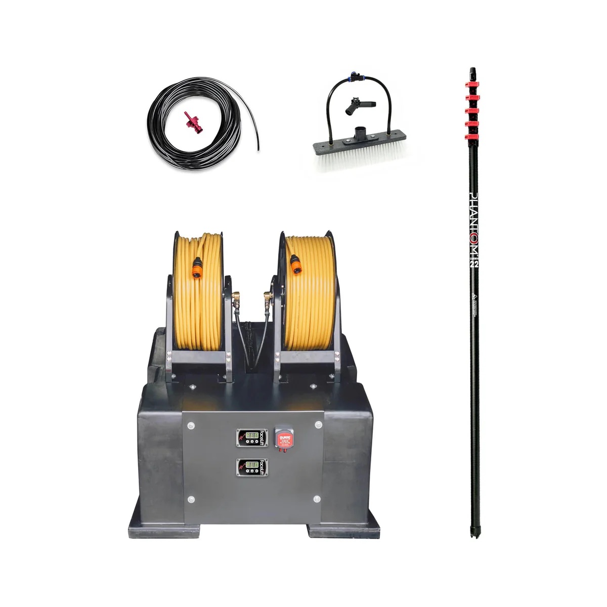 The Compact systems are designed as a simple introduction to Water Fed Window Cleaning. With the built in hose reel and compact footprint, the Osmo-Compact systems are a perfect fit for most vehicles. The Osmo-Compact represents great value for money and is commonly the system of choice for two-man Window Cleaning Businesses.