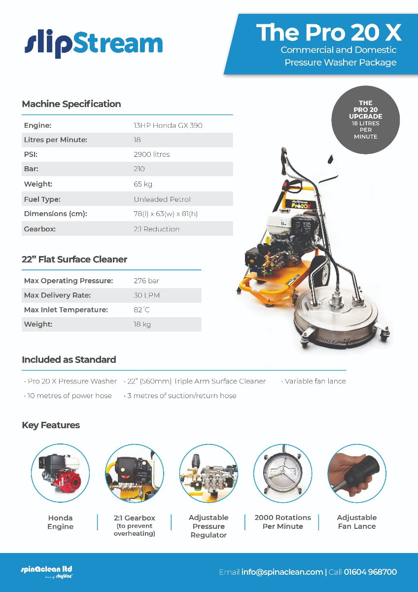 - PACKED WITH POWER: The Honda GX 390 powers a 22″ surface cleaner and delivers 18 litres of water per minute for unparalleled surface cleaning.