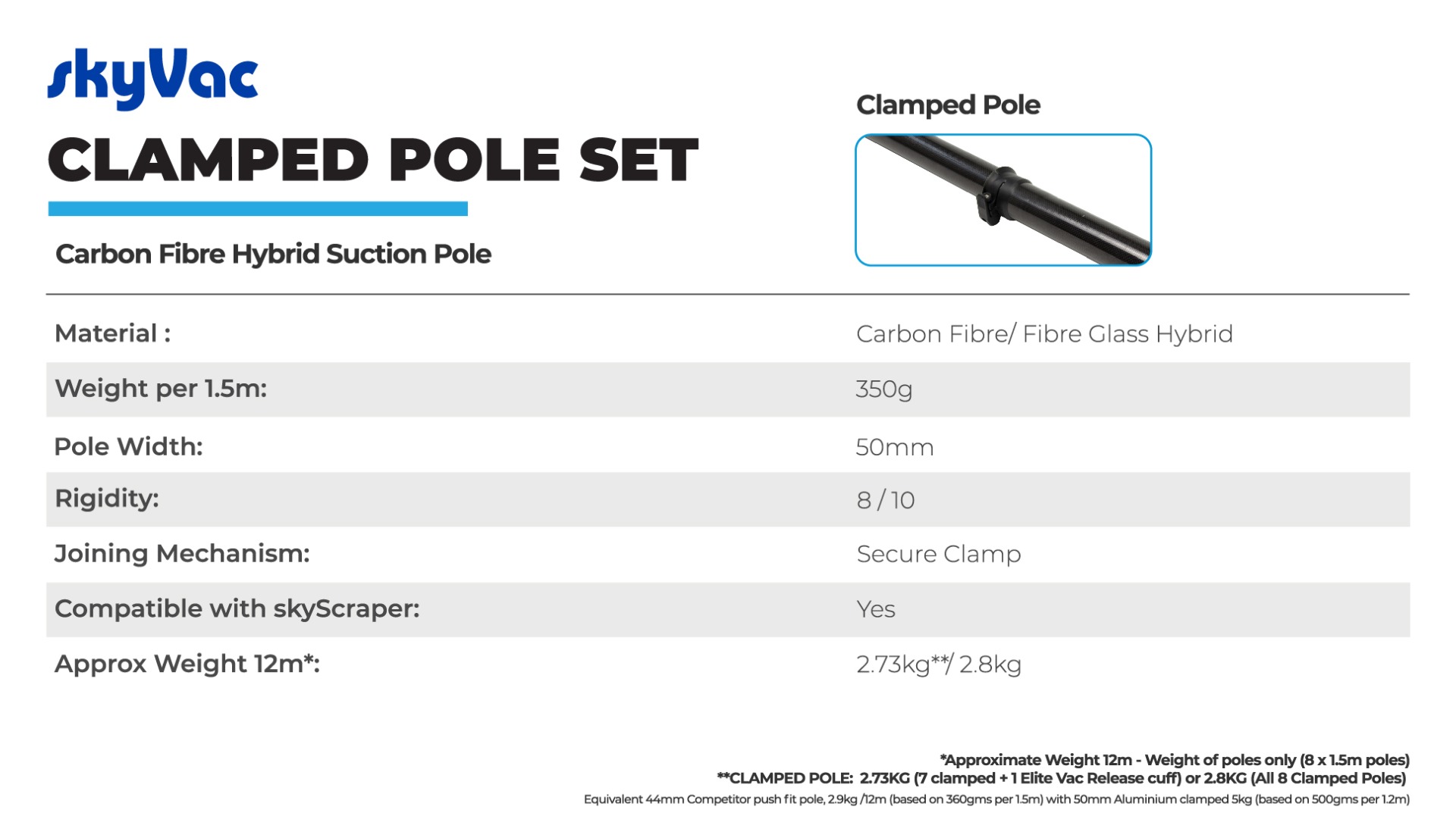 - THE PERFECT UPGRADE: Weighs in at just 350g per 1.5m, our 50mm diameter clamped suction poles are a great upgrade for your gutter vacuum.